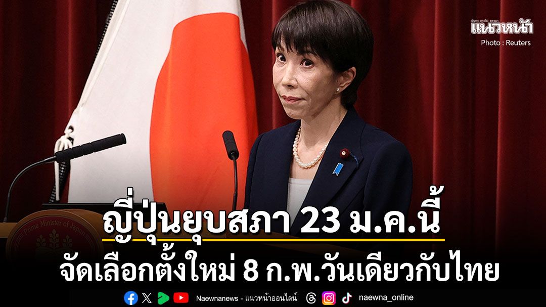 19 มกราคม 2568 สำนักข่าวต่างประเทศรายงานว่า นางซานาเอะ ทาคาอิจิ นายกรัฐมนตรีญี่ปุ่น ประกาศอย่างเป็นทางการว่า จะยุบสภาผู้แทนราษฎรในวันเปิดสมัยประชุมรัฐสภาสามัญ ซึ่งจะมีขึ้นในวันที่ 23 มกราคม 2569 นี้