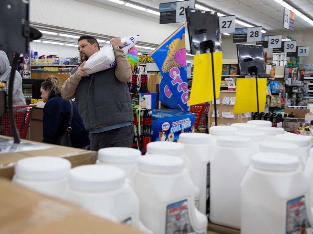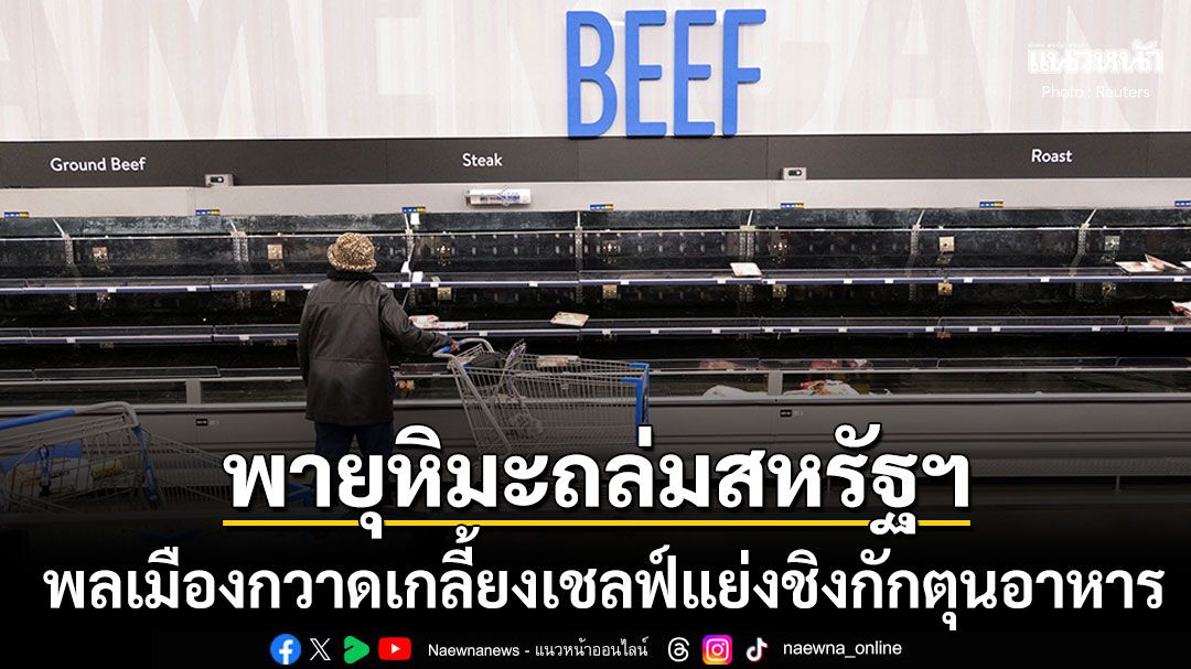 ซึ่งร้านวอลมาร์ต ซูเปอร์เซ็นเตอร์ เมืองเคป จีราร์โด รัฐมิสซูรี ชั้นวางสินค้าแทบว่างเปล่า ทั้งเนื้อสัตว์ ผลิตภัณฑ์นม น้ำดื่ม อาหารแช่แข็ง ประชาชนกวาดซื้อของเตรียมรับมือพายุหนาวรุนแรง ขณะเดียวกัน รัฐเพนซิลเวเนีย และพื้นที่ใกล้เคียงเผชิญอากาศหนาวจัดอย่างอันตราย ส่งผลให้ประชาชนต่อแถวยาวหน้าซูเปอร์มาร์เก็ตและปั๊มน้ำมัน เพื่อซื้อเสบียงและเชื้อเพลิง ก่อนพายุฤดูหนาวจะพัดถล่ม