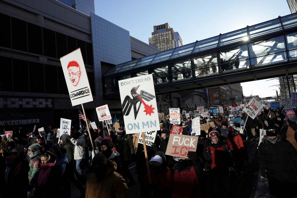 สร้างกระแสต่อต้านอย่างหนักจากประชาชนแม้อุณหภูมิจะติดลบ ผู้ประท้วงหลายพันคนยังคงรวมตัวในย่านดาวน์ทาวน์ ทั้งครอบครัวที่มีเด็กเล็ก ผู้สูงอายุ และนักกิจกรรม เพื่อคัดค้านการทำงานของสำนักงานตรวจคนเข้าเมืองและศุลกากรสหรัฐฯ