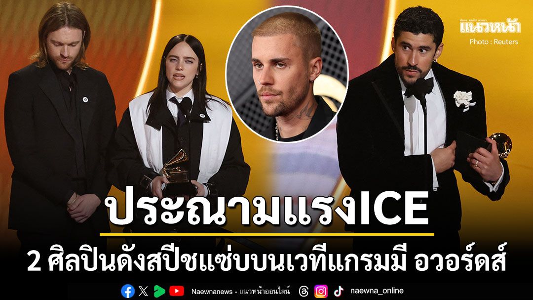ทางด้าน จัสติน บีเบอร์ - เฮลีย์ บีเบอร์ ปรากฏตัวที่งาน Grammys 2026 พร้อมติดเข็มกลัด ICE OUT แสดงจุดยืนต่อต้านหน่วยงานตรวจคนเข้าเมืองและศุลกากร (Immigration and Customs Enforcement: ICE)