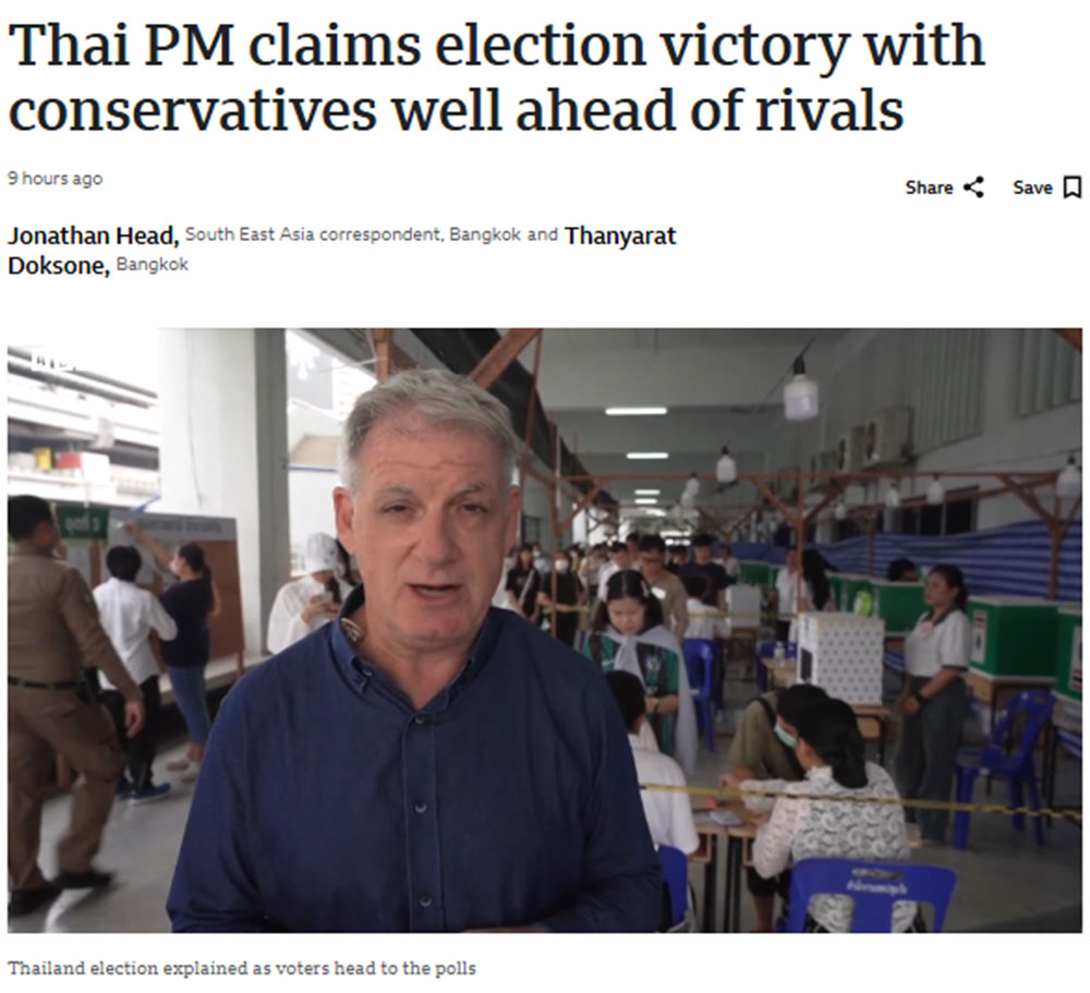 สุดท้ายสำนักข่าว แอสโซซิเอทเต็ด เพรส (Associated Press : AP) รายงานว่า พรรคภูมิใจไทย ซึ่งเป็นพรรคอนุรักษ์นิยมของไทย นำหน้าพรรคอื่นในผลสำรวจ แต่จำเป็นต้องหาพรรคร่วมรัฐบาลเพื่อจัดตั้งรัฐบาล