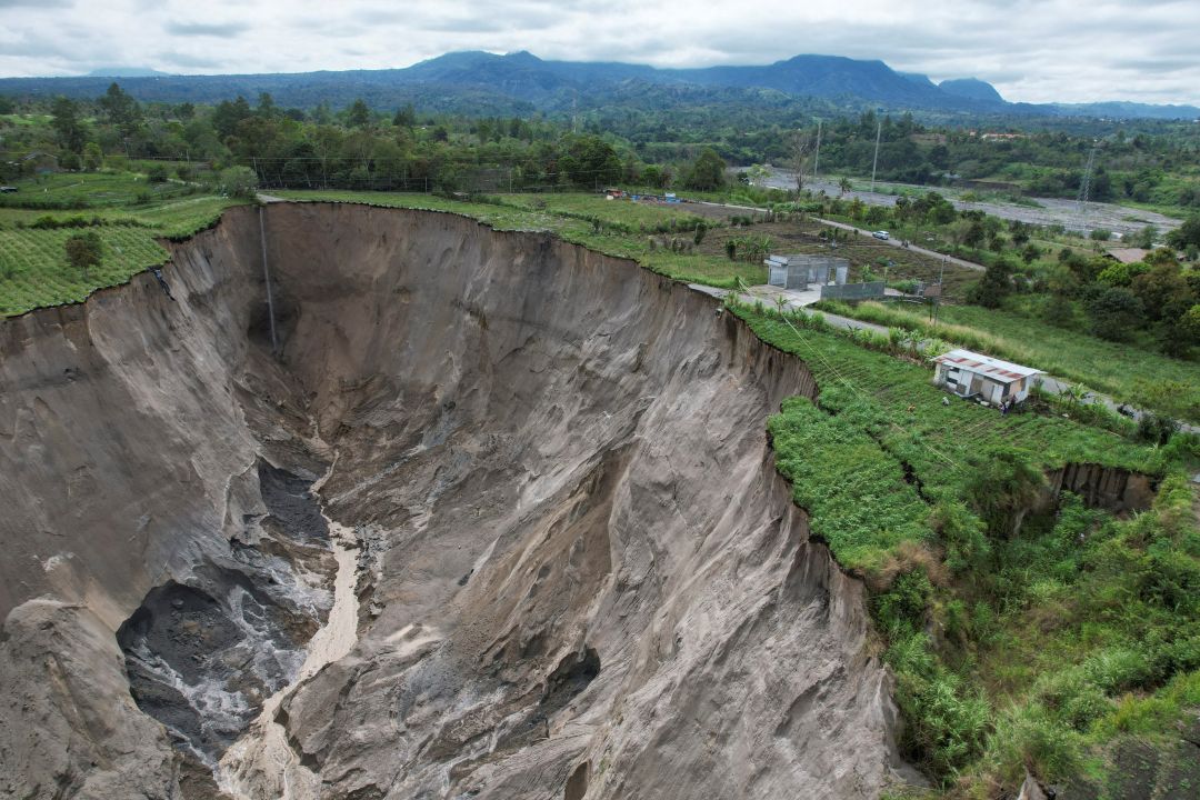 หลุมยุบขนาดมหึมาในจังหวัดอาเจะห์ ประเทศอินโดนีเซีย ขยายตัวจนมีพื้นที่กว้างถึงเกือบ 20 ไร่ในช่วงปีนี้ ส่งผลกระทบต่อเกษตรกรและชาวบ้านในพื้นที่