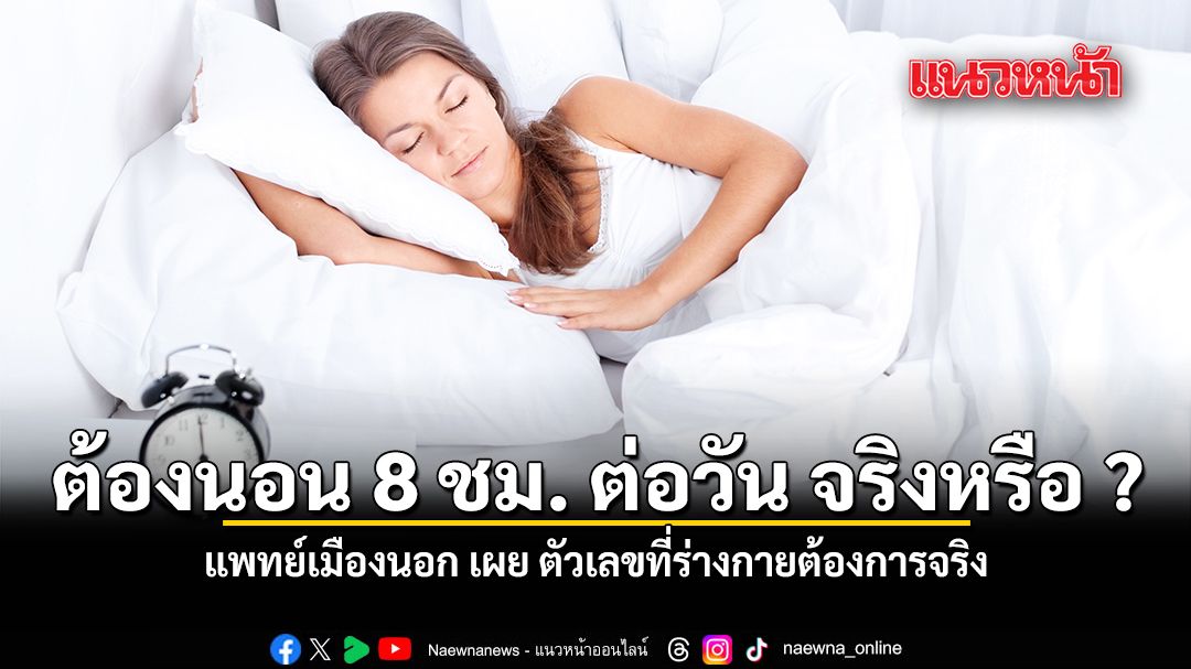 เมื่อวันที่ 17 กุมภาพันธ์ 22569 สำนักข่าวต่างประเทศรายงานเรื่องที่น่าสนใจสำหรับคนรักสุขภาพทั่วโลกต้องหันมาฟัง เมื่อเหล่าผู้เชี่ยวชาญทางการแพทย์ได้ออกมาหักล้างความเชื่อเรื่องต้องนอนให้ครบ 8 ชั่วโมง ที่หลายคนยึดถือเป็นกฎเหล็ก โดยระบุว่าตัวเลขดังกล่าวไม่ใช่เกณฑ์ที่ใช้ได้กับทุกคน และการกดดันตัวเองมากเกินไปอาจส่งผลเสียต่อร่างกายมากกว่าผลดี