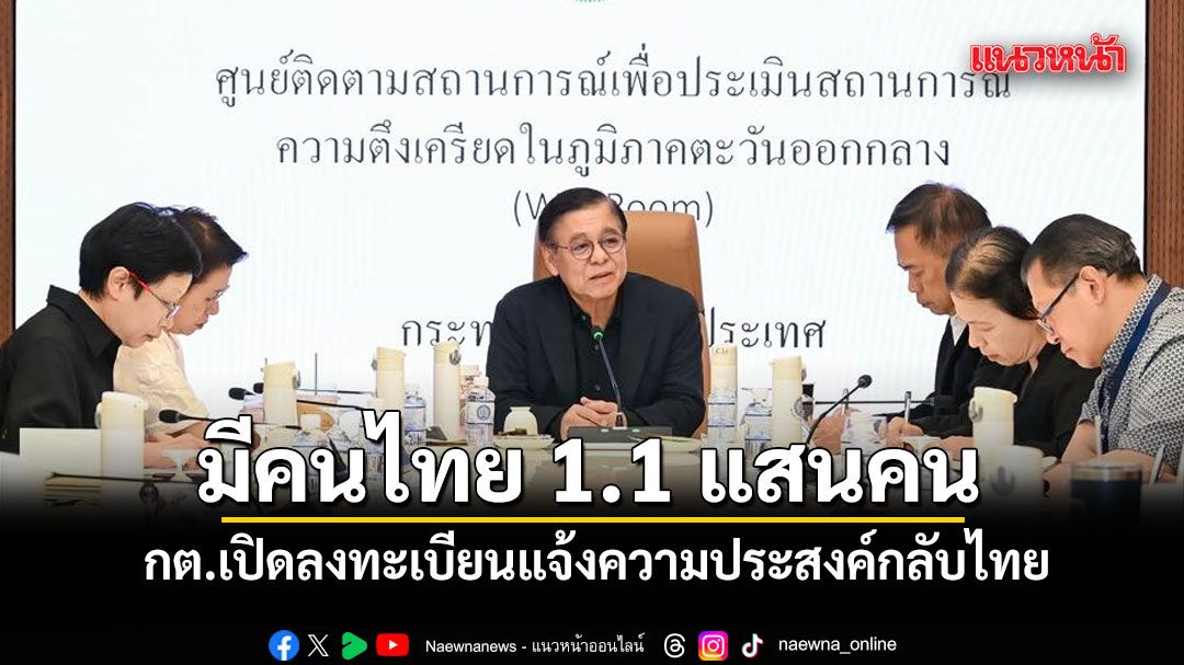 กต.ประชุมติดตามสถานการณ์ เผยยอดคนไทยในตะวันออกกลางรวม 1.1 แสนคน เปิดลงทะเบียนขอแจ้งกลับไทย มี 29 คนไทยในอิหร่าน-20 ชีวิตในอิสราเอล แจ้งความประสงค์แล้ว ยันยังไม่มีรายงานได้รับผลกระทบรุนแรง เร่งหารือเส้นทางอพยพ ถกต่อวงประชุม สมช.พรุ่งนี้ ทั้งผลกระทบศก.-พลังงาน-ความมั่นคง