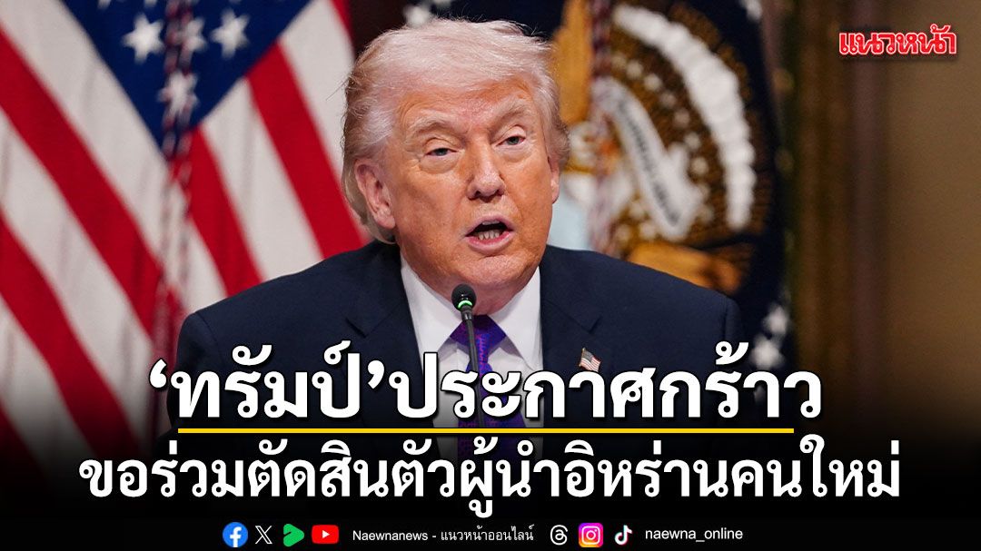 6 มีนาคม 2569โดนัลด์ ทรัมป์ ประกาศชัดว่าเขาต้องมีส่วนร่วมในการกำหนดตัวผู้นำสูงสุดคนใหม่ของอิหร่าน พร้อมปฏิเสธความเป็นไปได้ที่ มุจตาบา คาเมเนอี จะขึ้นสืบทอดอำนาจต่อจากบิดา