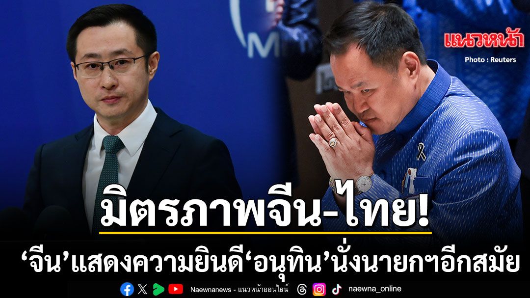19 มีนาคม 2569 สำนักข่าวซินหัวรายงานว่า นายหลิน เจี้ยน โฆษกกระทรวงการต่างประเทศของจีน กล่าวว่า จีนแสดงความยินดี กรณี นายอนุทิน ชาญวีรกูล ได้รับเลือกตั้งเป็นนายกรัฐมนตรีไทยอีกสมัย โดยจีนเชื่อมั่นว่าประเทศไทยภายใต้การนำของนายกรัฐมนตรีอนุทินจะประสบความสำเร็จในการพัฒนาชาติบ้านเมืองยิ่งขึ้น