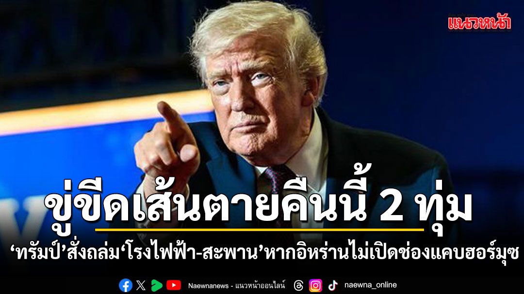 ปธน.สหรัฐ DONALD TRUMP เตือนผู้นำอิหร่านโรงงานพลังงานและสะพานในอิหร่านจะเป็นเป้าหมายโจมตีอย่างรุนแรง หากไม่เปิดช่องแคบฮอร์มุสภายในกำหนดเส้นตายเวลา 20.00 น. ของค่ำวันจันทร์ที่ 6 เม.ย. ตามเวลาในสหรัฐ