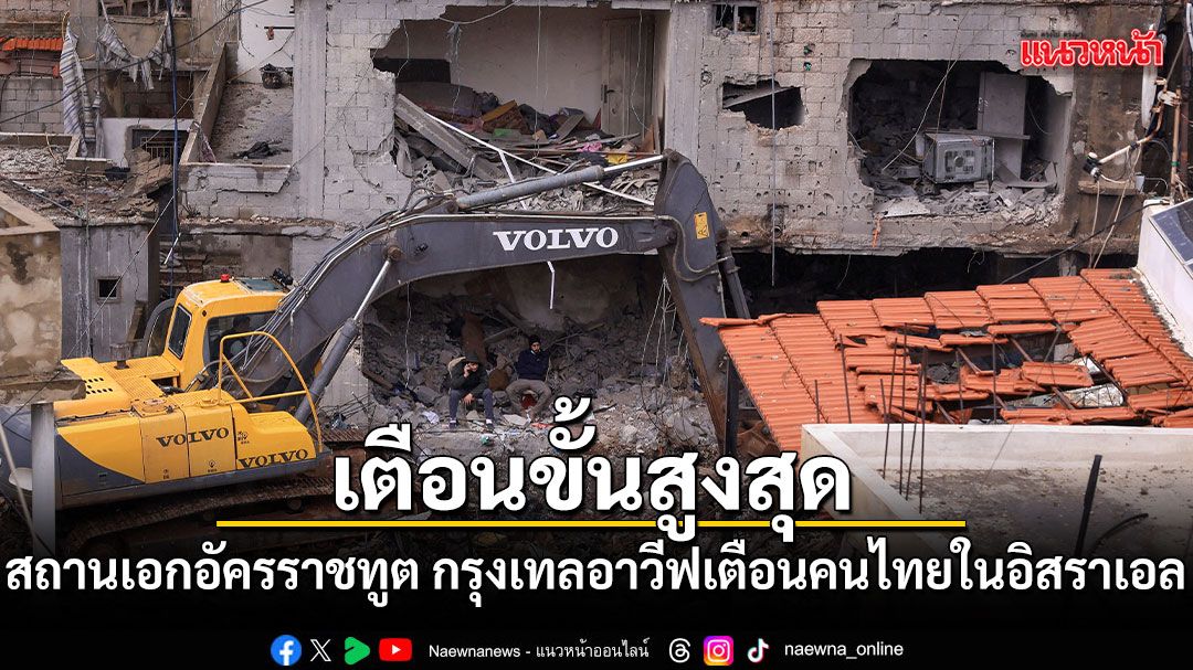 7 เมษายน 2569 สถานเอกอัครราชทูต ณ กรุงเทลอาวีฟ ประเทศอิสราเอล ได้ออกคำเตือนระวังภัยขั้นสูง (HIGH-ALERT WARNING) ผ่านเฟซบุ๊ก “Royal Thai Embassy, Tel Aviv” ระบุว่า ขณะนี้สถานการณ์สงครามระหว่างสหรัฐอเมริกาและอิสราเอล กับอิหร่าน ทวีความรุนแรงอย่างต่อเนื่องและมีแนวโน้มจะกระทบโดยตรงต่อชีวิตและทรัพย์สินของพลเรือนมากขึ้นอย่างชัดเจน