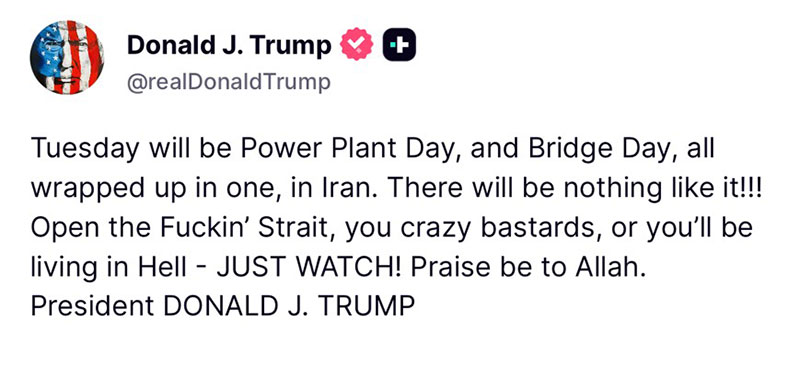 ดร.จอห์น การ์ทเนอร์ ระบุว่า บุคคลที่มีอาการสมองส่วนหน้าเสื่อมจะสูญเสียความสามารถในการตัดสินใจ การยับยั้งชั่งใจ การควบคุมพฤติกรรมของตนเอง และจะแสดงความก้าวร้าวออกมา ซึ่งสังเกตได้จากพฤติกรรมการใช้โซเชียลส่วนตัวของ 'ทรัมป์' ที่เขาได้โพสต์ทรูธ โซเชียลด้วยถ้อยคำหยาบคาย รุนแรง ในการข่มขู่ฝ่ายตรงข้ามอย่างอิหร่าน โดยเฉพาะอย่างยิ่งการโพสต์ในวันอีสเตอร์ ที่ 'ทรัมป์' พุ่งเป้าโจมตีโครงสร้างพื้นฐานพลเรือนของอิหร่าน