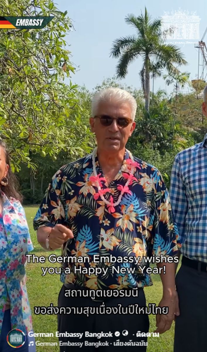 German Embassy Bangkok ของสถานเอกอัครราชทูตเยอรมนี กรุงเทพฯ ได้ทำคลิปเปิดที่ ดร.แอ็นสท์ ว็อล์ฟกัง ไรเชิล เอกอัครราชทูตเยอรมันประจำประเทศไทย เดินเข้ามาในชุดสูท กล่าวว่า "ผมทำงานนี้มา 38 ปี ในสายงานของผม สิ่งสำคัญที่สุดคือความร่วมมือ ไม่มีอะไรที่ง่าย และในแต่ละปีก็มีความท้าทายใหม่ๆ ให้ต้องรับมือ ทางออกที่ดีที่สุดมักเกิดขึ้น เมื่อทุกเสียงได้รับการรับฟัง เราไม่ได้เป็นคนเลือกงาน แต่งานต่างหากที่เลือกเรา ยุติธรรม รับฟัง ให้ความเคารพในทุกย่างก้าว เพราะทุกเสียงมีความหมาย เราพร้อมเคียง