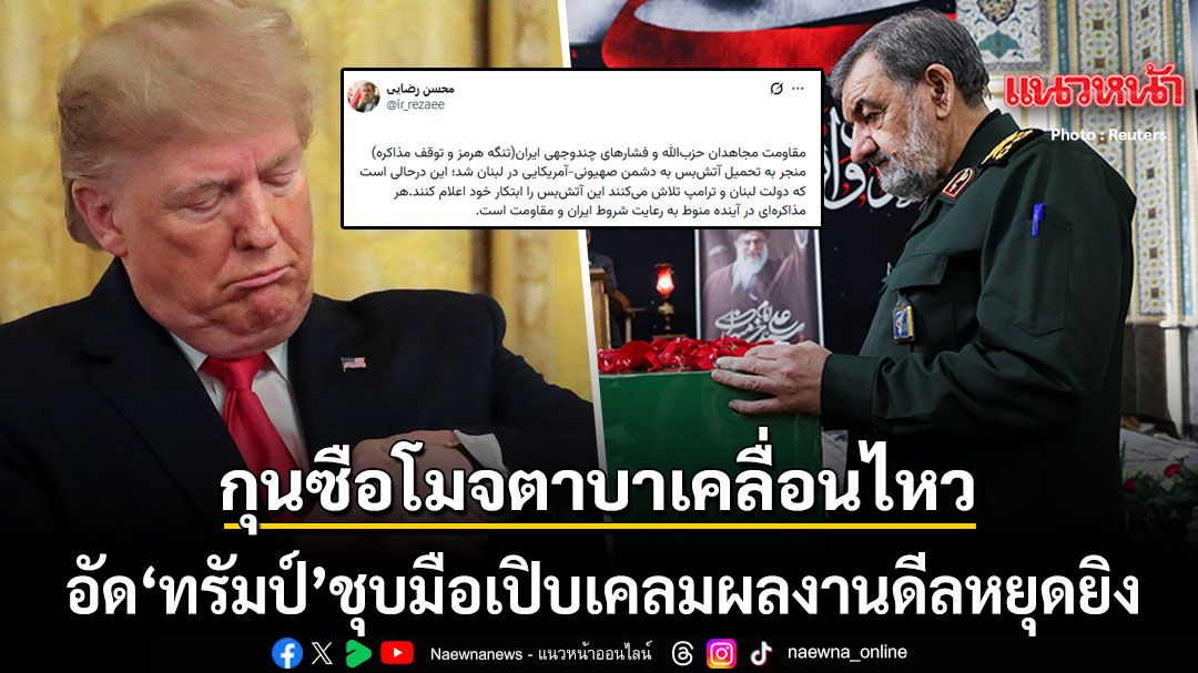 17 เมษายน 2569 สำนักข่าวต่างประเทศรายงานว่า พลตรีโมห์เซน เรซาอี (Mohsen Rezaee) เป็นที่ปรึกษาอาวุโสทางทหารของผู้นำสูงสุดอิหร่าน โมจตาบา คาเมเนอี ได้ออกมาโพสต์ข้อความผ่านทางเอ็กซ์ "@ir_rezaee" ระบุข้อความว่า การต่อต้านของนักรบฮิซบอลเลาะห์ และแรงกดดันหลายด้านจากอิหร่าน (ช่องแคบฮอร์มุซ และการหยุดชะงักของการเจรจา) นำไปสู่การประกาศหยุดยิงต่อศัตรูไซออนิสต์ (อิสราเอล) -อเมริกันในเลบานอน