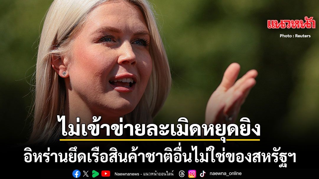 แคโรไลน์ เลวิตต์ ระบุว่า เรือเหล่านี้ไม่ใช่เรือของสหรัฐฯ และไม่ใช่เรือของอิสราเอล แต่เป็นเรือนานาชาติ 2 ลำ เรือทั้งสองลำถูกยึดโดยเรือปืนความเร็วสูง จากเดิมที่อิหร่านเคยมีกองทัพเรือที่ทรงอานุภาพที่สุดในตะวันออกกลาง แต่ตอนนี้กลับทำตัวเหมือนกลุ่มโจรสลัด พวกเขาไม่มีอำนาจควบคุมช่องแคบอีกต่อไป สิ่งที่เราเห็นอยู่นี้คือการกระทำเยี่ยงโจรสลัด และการปิดล้อมทางเรือที่สหรัฐฯ บังคับใช้อยู่นั้นยังคงมีประสิทธิภาพอย่างยิ่ง