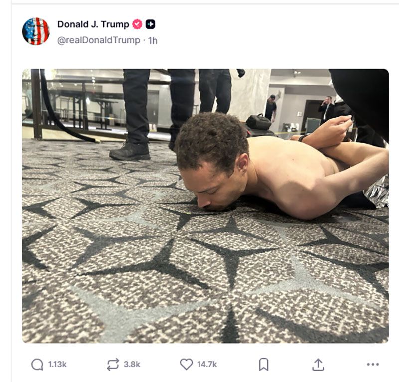 โดนัลด์ ทรัมป์ กล่าวเหตุการณ์ที่เกิดขึ้นล่าสุดไม่ใช่เป็นครั้งแรกในรอบ 2 - 3 ปีที่ผ่านมา ที่มีคนร้ายพยายามโจมตีทำร้ายมุ่งสังหารเอาชีวิต พร้อมกล่าวเรียกร้องต่อประชาชนอเมริกัน ให้ยึดมั่นในแนวทางแก้ปัญหาความเห็นต่างอย่างสันติวิธี
