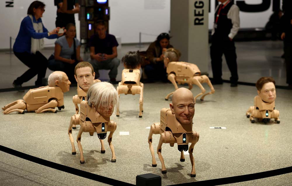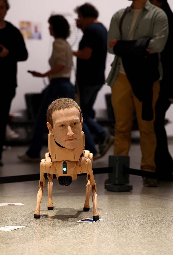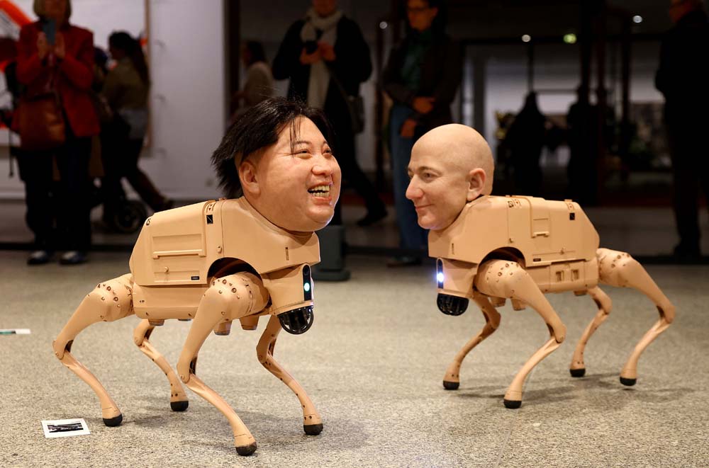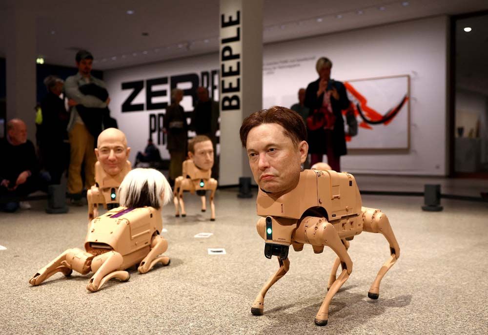 30 เมษายน 2569 สำนักข่าวต่างประเทศรายงานว่า ไมค์ วินเคลมันน์ หรือที่รู้จักกันดีในชื่อ Beeple ศิลปินดิจิทัลชาวอเมริกันสุดโด่งดัง จัดแสดงผลงานศิลปะนวัตกรรมใหม่ เป็นงานศิลปะแบบจัดวาง (Installation Art) เป็นหุ่นยนต์สุนัขที่มีใบหน้าเป็นมหาเศรษฐีผู้ทรงอิทธิพลในโลกเทคโนโลยีและศิลปินระดับตำนาน ที่หอศิลป์แห่งชาติแห่งใหม่ ที่กรุงเบอร์ลิน ประเทศเยอรมนี