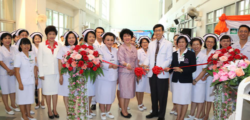 ผศ.นพ.นิสิต วรรธนัจฉริยา ผอ.โรงพยาบาลมหาราชนครเชียงใหม่ ตัดริบบิ้นเปิดงานพร้อมด้วยคณะพยาบาล