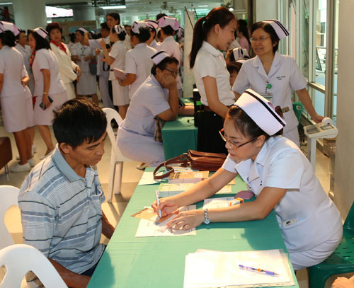 พยาบาลและเจ้าหน้าที่ให้คำแนะนำกับประชาชนผู้เข้าร่วมงานอย่างคับคั่ง