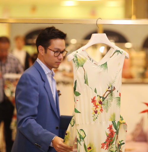 สธน ตันตราภรณ์ กำลังดูลายพิมพ์บนเสื้อสวย