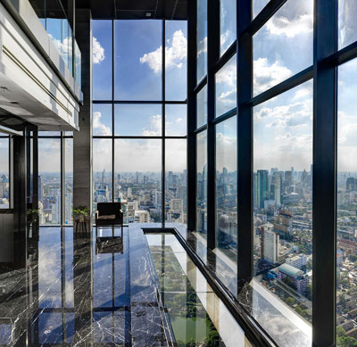 โดยทั่วไปจะเห็นว่าไม่ค่อยมีคอนโดมิเนียมที่เป็นกระจกทั้งหมด ส่วนใหญ่จะเป็นสำนักงานออฟฟิศมากกว่า แต่คอนโดมิเนียมแห่งนี้เป็นกระจกทั้งหมด เป็นคอนโดมิเนียมที่ใช้กระจก2 ชั้น กระจก 2 ชั้นดีอย่างไร ก็คือดีในแง่ของการช่วยลดปริมาณแสงแดด ปริมาณยูวีที่จะผ่านเข้ามาในอาคาร นั่นหมายความว่าลูกบ้านที่มาอยู่ก็ไม่จำเป็นต้องเปิดแอร์แรงมากๆ เพื่อให้ความเย็นแรงมากๆ มันก็จะประหยัดไฟในระยะยาว