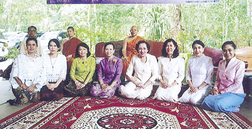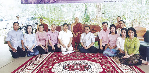 พระอาจารย์ธาตุ เมตตาให้พร ขนิษฐา บุญราช นายกสมาคมแม่บ้านมหาดไทย และ ธัญญลักษณ์ ศิริชนะ, ปรานต์ทิพย์ ธิติศักดิ์ อุปนายกสมาคม, สุจิตรา ศรีนาม ประธานแม่บ้านมหาดไทย จ.จันทบุรี และกรรณภรณ์ วงศ์ปิยะกุล พร้อมคณะ