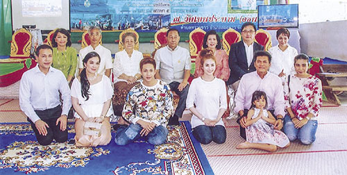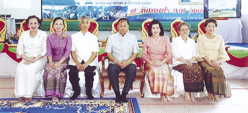 องคมนตรี พร้อมด้วย ผศ.ดร.พรทิพย์-คุณย่าสุภรณ์ พุกผาสุก, ผวจ.จันทบุรี วิทูรัช-สุจิตรา ศรีนาม และ อัญชลี ชวนิชย์ รองประธานจัดสร้างพระ