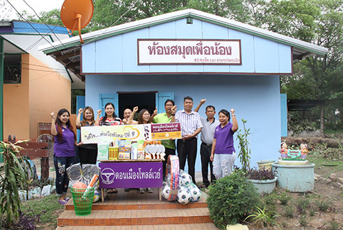 ร่วมถ่ายภาพกับห้องสมุดใหม่พร้อมมอบอุปกรณ์การเรียนการสอน