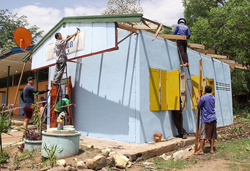 เหล่าพนักงานจิตอาสาช่วยกันซ่อมแซมห้องสมุด