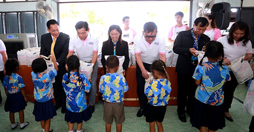ผู้ใหญ่ใจดีมอบของที่ระลึกให้กับน้องๆ นักเรียนทุกคน พร้อมเลี้ยงอาหารกลางวัน
