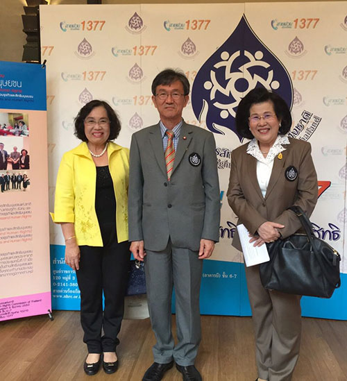 (กลาง) วัส ติงสมิตร ประธานกรรมการสิทธิมนุษยชนแห่งชาติ และ (ขวา) ประกายรัตน์ ต้นธีรวงศ์ กรรมการสิทธิมนุษยชน