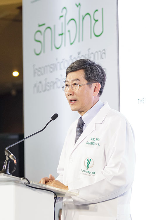 นายแพทย์นำ ตันธุวนิตย์ ผู้อำนวยการด้านบริหาร โรงพยาบาลบำรุงราษฎร์ เผยว่า หนึ่งในแนวคิดและพันธกิจหลักที่โรงพยาบาลบำรุงราษฎร์ยึดมั่นตลอด คือการมีส่วนร่วมในการตอบแทนสู่สังคม โดยใช้ความสามารถ ศักยภาพ และทรัพยากรที่โรงพยาบาลมีอยู่ จึงได้ริเริ่มและสานต่อโครงการผ่าตัดหัวใจให้แก่เด็กด้อยโอกาสที่ป่วยเป็นโรคหัวใจพิการแต่กำเนิด โดยไม่คิดค่าใช้จ่าย ภายใต้โครงการ “รักษ์ใจไทย” ด้วยความร่วมมือระหว่างมูลนิธิโรงพยาบาลบำรุงราษฎร์ และโรงพยาบาลบำรุงราษฎร์ กับมูลนิธิเด็กโรคหัวใจในพระอุปถัมภ์ของสมเด็จพระเจ้าพี่นางเธอ เจ้าฟ้ากัลยาณิวัฒนา กรมหลวงนราธิวาสราชนครินทร์ โครงการดังกล่าวเริ่มตั้งแต่ พ.ศ.2546 และได้ทำการผ่าตัดช่วยเหลือผู้ป่วยเด็กไปแล้วกว่า 735 ราย โดยการผนึกกำลังของคณะแพทย์ผู้เชี่ยวชาญจากสหสาขาและด้านโรคหัวใจพิการแต่กำเนิด ประกอบด้วย ศ.พญ.อรดี จันทวสุ กุมารแพทย์ทารกแรกเกิดและปริกำเนิดแพทย์ซึ่งเป็นผู้ริเริ่มโครงการ รศ.นพ.สัมพันธ์ พรวิลาวัณย์ ศัลยแพทย์หัวใจและทรวงอก นพ.ปรีชา เลาหคุณากร กุมารเวชแพทย์โรคหัวใจเด็ก และ ผศ.พญ.ธรรมบวร เนติ วิสัญญีแพทย์ รวมถึงคณะพยาบาลผู้เชี่ยวชาญ โภชนากรเฉพาะทางและเภสัชกรที่ทำงานร่วมกับแพทย์อย่างใกล้ชิด