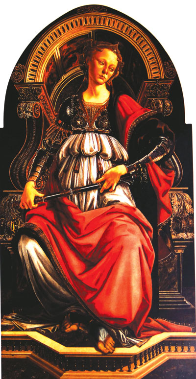 ผลงานที่เด่น ๆ ของ Botticelli ใน Uffizi ก็คือ Fortitude ผลงานในช่วงต้นของอาชีพของศิลปินชิ้นนี้ถูกว่าจ้างโดย Tribunale dell’ Arte della Mercanzia ในเดือนพฤษภาคม ปี 1470 เพื่อตกแต่ง Audio Hall แม้ผลงานชิ้นนี้จะเป็นชิ้นแรกๆ ของศิลปินแต่ก็เริ่มฉายแววศิลปินที่มีชื่อเสียงแล้ว สังเกตได้จากการลงสี ลวดลายของเส้น และลายพับผ้าบริเวณใต้อก และหน้าขา รวมทั้งนิ้วเท้าแสดงให้เห็นว่าศิลปินสามารถวาดภาพได้อย่างเหมือนจริงจนดูเหมือนภาพถ่าย