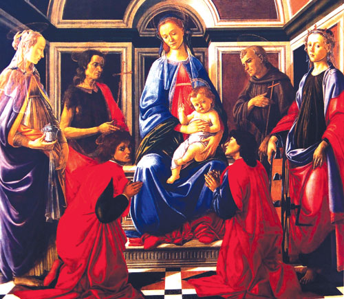 Madonna and Child with Saints ผลงานที่ถูกเคลื่อนย้ายมาจากแท่นบูชาใน Benedictine monastery of St.Ambrogio มายัง Accademia gallery ในปี 1808 นี้แสดงให้เห็นอย่างเด่นชัดว่าศิลปินได้รับอิทธิพลในการจัดวางองค์ประกอบของภาพมาจาก Fra Filippo Lippi ซึ่งแตกต่างจากภาพ Virgin and Saint ทั่วไปตรงที่ ศิลปินวาดให้ Mary Magdalene และ Saint John the Baptist อยู่ในท่ายืนแทนที่จะเป็นท่าคุกเข่าเหมือนอย่างปกติ ส่วนรูปแบบของเสื้อผ้านั้น ศิลปินได้รับอิทธิพลมาจาก Verrocchio อาจารย์อีกคนของเขาในช่วงเวลานั้น