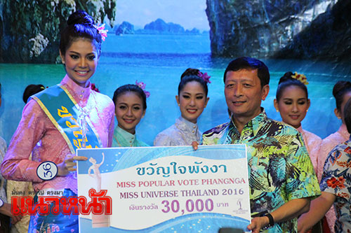 19 ก.ค.59 ผู้สื่อข่าวรายงานว่าเมื่อช่วงค่ำวันที่ 18 ก.ค.ที่ผ่านมา ที่โรงแรมเซ็นทีโด้ เกรซแลนด์ เขาหลัก รีสอร์ทแอนด์สปา อ.ตะกั่วป่า จ.พังงา เหล่าสาวงามผู้เข้าประกวดมิสยูนิเวิร์สไทยแลนด์ 2016 ที่ได้เก็บตัวทำกิจกรรมที่จังหวัดพังงา เข้าร่วมงานงานกาลาดินเนอร์ เพื่อประกวด "ขวัญใจพังงา" โดยมี ยิ้ม ชาวิกา วัตรสังข์ รองอันดับ 1 มิสยูนิเวิร์สไทยแลนด์ 2015 เป็นพิธีกร