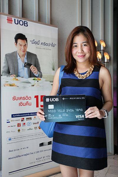 สุพรทิพย์ พงศาชำนาญกิจ ผู้อำนวยการอาวุโส ฝ่ายบัตรเครดิตธนาคาร ยูโอบี จำกัด (มหาชน)กล่าวว่าเพื่อเป็นการมอบสิทธิพิเศษรองรับไลฟ์สไตล์ โดยเฉพาะหมวดร้านอาหาร ที่ลูกค้ามีการใช้จ่ายบ่อยที่สุด 1 ใน 3 หมวดใหญ่ของบัตรเครดิตยูโอบีและเทรนด์ของร้านอาหารที่เปิดเพิ่มมากขึ้น และนอกจากทางบัตรจะร่วมกับร้านอาหารภายในประเทศแล้ว ยังมีสิทธิพิเศษร้านอาหารที่ต่างประเทศด้วย เช่น สิงคโปร์ มาเลเซีย และอินโดนีเซีย ตลอดจนมีโปรโมชั่นและสิทธิพิเศษต่างๆ อีกหลายรายการตลอดทั้งปี ได้แก่ เครดิตเงินคืน 15% เมื่อใช้คะแนนสะสมเท่ายอดใช้ ทุกร้านอาหาร จนถึงสิ้นปี รวมถึงทางบัตรยังมี “UOB Friday Surprise” พิเศษทุกวันศุกร์ กินเท่าไร จ่ายครึ่งเดียว ซึ่งเราจะเปลี่ยนร้านไปตลอดทุกศุกร์ โดยลูกค้าสามารถติดตามข่าวสารอัพเดตผ่านทางเว็บไซต์หรือLine UOB Thai ดังนั้น ลูกค้าที่มีบัตรเครดิตยูโอบีจึงได้รับอภิสิทธิ์และสิทธิพิเศษมากมายจริงๆ จากร้านอาหารมากกว่า 1,000 ร้านและจะเพิ่มเป็น 3,000 ร้านภายในปี 2017”