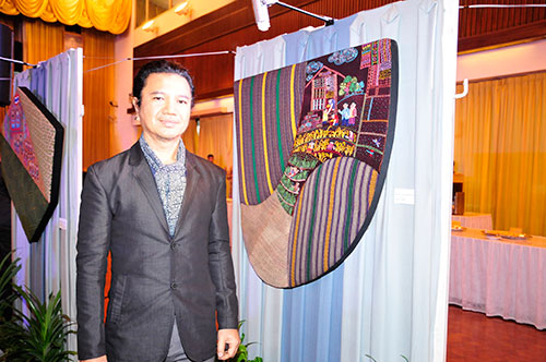 นันทพงศ์ สินสวัสดิ์ เป็นผู้ออกแบบศิลปกรรมสื่อผสมกว่า 70 ผลงาน เผยว่า ผลงานผ้าชาวไทยภูเขาที่มีอยู่ในคลังของศิลปาชีพมีมากมายนับพันชิ้น ผืนผ้าที่สวยน้อยที่สุดที่อยู่ในคลังยังมีความงดงามที่สุดในโลก ในผ้าผืนหนึ่งแม้จะด้อยสุดแต่ก็มีอะไรลึกๆ อยู่ในผ้า ที่ชุบชีวิตชาวไทยภูเขามีหนทางการดำเนินชีวิตแบบใหม่หลุดพ้นจากการทำไร่เลื่อนลอยปลูกฝิ่น นี่คือความงามที่อยู่ใต้ผืนผ้าที่เราต้องมองทะลุมันออกไป และต้องถ่ายทอดความงามที่อยู่ใต้ผ้าที่ผ่านการเย็บ ปัก ตรึง ถ่ายทอดออกมาให้ทุกคนเห็น ศิลปะที่นำมาถ่ายทอดนี้ได้แรงบันดาลใจจาก พระบาทสมเด็จพระเจ้าอยู่หัว ที่ทรงเป็นอัครศิลปิน จึงหยิบยกเอาความเป็นศิลปะมาถ่ายทอด ศิลปะของพื้นถิ่นแสดงสัญลักษณ์และแสดงถึงรายละเอียดวิถีชนเผ่าด้วยแรงบันดาลใจจิตรกรรมฝาผนังล้านนา ทำเป็นงานปักผสมงานผ้า