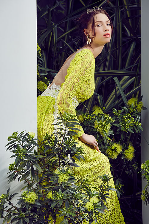 นอกจากนี้ยังเพิ่มความพิเศษด้วยผ้าลูกไม้ การใช้ผ้าซาตินดัชเชส และผ้าออแกนดี้ในคอลเลคชั่นนี้ รวมไปถึงเทคนิคการปักลายดอกไม้ ที่มีความเป็นเอกลักษณ์ เพิ่มความหรูหราและสนุกสนานในการแต่งตัวใน Prefall ได้เป็นอย่างดี