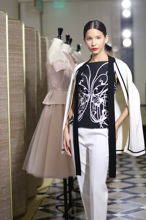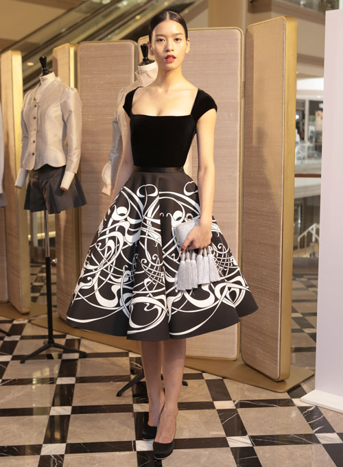 นอกจากนี้ยังเพิ่มงานดีไซน์แปลกใหม่อย่างกางเกงทรงซิกาแร็ตและเสื้อท่อนบนด้วยแพทเทิร์นดีคอนสตรัคชั่นผูกโบว์องค์ประกอบเด่นที่ให้ความโก้หรูทว่าดูคล่องแคล่วแบบหญิงสาวสมัยใหม่ ขาดไม่ได้กับชิ้นเด่นที่เป็นเอกลักษณ์อย่างกระโปรงเอไลน์ทรงสุ่มและเดรสทรงสอบเข้ารูป ด้วยการเลือกใช้เนื้อผ้าที่สะท้อนถึงความหรูหราอย่างผ้ากำมะหยี่เนื้อนุ่มเงา, ผ้าทูทูที่ช่วยสร้างเค้าโครงโปร่งสบายเพิ่มลูกเล่นด้วยการใช้ผ้าที่สร้างมูฟเม้นท์อย่างผ้าโพลีเอสเตอร์ที่ยืดหยุ่นได้ดี รวมถึงผ้าซิลค์ซาตินเนื้อมันวาวที่ตัดเย็บโครงด้านล่างให้ชายกระโปรงพลิ้วไหวยามก้าวเดิน เผยความโก้หรูด้วยโทนสีเบสิคอย่างสีขาวและสีเบจ อีกทั้งยังเพิ่มความน่าค้นหาด้วยการไล่ระดับของโทนสี เช่น สีชมพูเข้ม,สีแดงสด, สีเขียวมะกอก และสีดำ