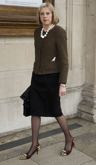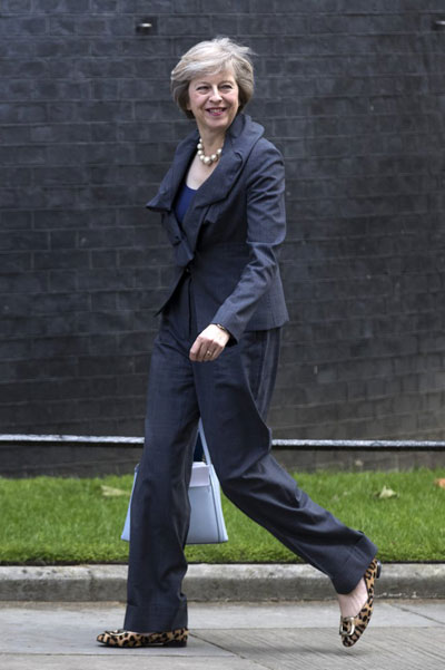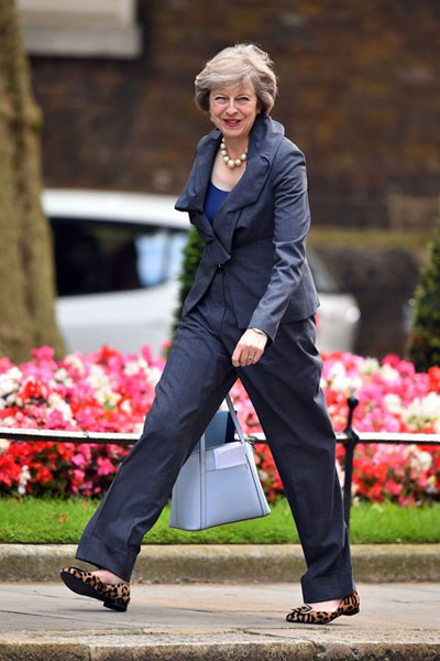 เทเรซ่า เมย์ (Theresa May) นายกรัฐมนตรีหญิงคนที่ 2 ของอังกฤษ เจ้าของฉายาแฟชั่นนิสต้าแห่งรัฐสภา ตั้งแต่ครั้งที่ดำรงตำแหน่งรัฐมนตรีว่าการกระทรวงมหาดไทยด้วยสไตล์การแต่งตัวที่เป็นเอกลักษณ์กับเสื้อผ้าแบรนด์ดังและรองเท้าลายเสือดาวคู่โปรด