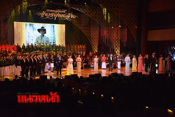31 ก.ค.59 ผู้สื่อข่าวรายงานว่า วานนี้ (30 ก.ค.59) เวลา 19.00 น.พระบาทสมเด็จพระเจ้าอยู่หัว ทรงพระกรุณาโปรดเกล้าโปรดกระหม่อมให้ พล.อ.เปรม ติณสูลานนท์ ประธานองคมนตรีและรัฐบุรุษ เป็นผู้แทนพระองค์ ไปในงานแสดงคอนเสิร์ต "บทเพลงแห่งข้าวรพุทธเจ้า" ซึ่งสภานิติบัญญัติแห่งชาติ (สนช.) จัดขึ้นเนื่องในโอกาสการจัดงานเฉลิมพระเกียรติพระบาทสมเด็จพระเจ้าอยู่หัว เนื่องในโอกาสมหามงคลเสด็จเถลิงถวัลยราชสมบัติ ครบ 70 ปี 9 มิถุนายน 2559 และสมเด็จพระนางเจ้าฯ พระบรมราชินีนาถ เนื่องในโอกาสมหามงคลเฉลิมพระชนมพรรษา 7 รอบ 12 สิงหาคม 2559 บรรเลงและขับร้องเพลงโดยวงดุริยางค์ราชนาวี และวงสุนทราภรณ์ ณ หอประชุมมหิดลสิทธาคาร มหาวิทยาลัยมหิดล อำเภอพุทธมณฑล จังหวัดนครปฐม