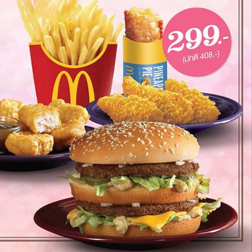 “ชุดสุขสันต์วันแม่” ชวนชิมชุดแมคโดนัลด์บอกรักแม่ถึงบ้าน ได้แก่ บิกแมค, ชิคสติ๊ก, แมคนักเก็ต,เฟรนช์ฟรายส์ และพายสับปะรด ในราคาเพียงชุดละ 299 บาท จากปกติ 408 บาท เฉพาะบริการจัดส่งถึงบ้าน ตลอดเดือน ส.ค. ที่แมคดิลิเวอรี่โทร.1711