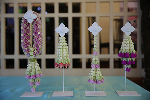 “สำหรับประติมากรรมชิ้นพิเศษที่เป็นแลนด์มาร์คสำคัญในปีนี้ ได้นำดอกไม้ พืชพันธุ์ต่างๆ และวัสดุอุปกรณ์ที่ใช้ประดิษฐ์เป็นพวงมาลัยดอกไม้ไทย มารังสรรค์เป็นผลงานประติมากรรมขนาดเล็กนับสิบชิ้นที่ได้รับแรงบันดาลใจจากปากคลองตลาด ตำนานตลาดดอกไม้ที่ใหญ่ที่สุดในเมืองไทยในรูปแบบแปลกใหม่โดยประดิษฐ์จากดอกไม้สด และวัสดุอุปกรณ์ต่างๆที่ใช้ในการจัดดอกไม้ เช่น ดอกไม้สดต่างๆ ดอกไม้พลาสติก หยวกกล้วย เข็มร้อยมาลัยโอเอซิส กรรไกร เป็นต้น ซึ่งรับรองว่าผู้เข้าชมต้องไม่พลาดบันทึกภาพเก็บไว้เป็นที่ระลึกเหมือนดังเช่นทุกปี” ทั้งนี้ ภายในงาน ได้รับเกียรติจากคู่แม่ลูกเซเลบริตี้ ได้แก่ ชวนพิศ ธรรมศิริและ ณัฎฐวรรณ ตันหยงมาศ หรือคุณก้อยร่วมพูดคุยถึงความรัก ความผูกพันระหว่างแม่ลูก พร้อมแบ่งปันประสบการณ์ และเคล็ดลับในการเลี้ยงดูลูกๆ ที่ถ่ายทอดจากรุ่นสู่รุ่นซึ่งสามารถนำไปประยุกต์ใช้กับคนรุ่นใหม่ได้เป็นอย่างดี