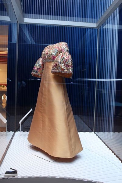 ด้าน ปิยวรา ทีขะระ เนตรน้อย ผู้อำนวยการพิพิธภัณฑ์ผ้า ในสมเด็จพระนางเจ้าสิริกิติ์พระบรมราชินีนาถ เผยว่า ฉลองพระองค์ของ สมเด็จพระนางเจ้าฯ พระบรมราชินีนาถ ที่เชิญมาจัดแสดงมีด้วยกันกว่า 30 องค์ ซึ่งออกแบบและตัดเย็บ โดย นายปิแอร์ บัลแมง นักออกแบบชาวฝรั่งเศส ในการโดยเสด็จฯพระบาทสมเด็จพระเจ้าอยู่หัว เสด็จฯ เยือนต่างประเทศอย่างเป็นทางการครั้งแรก ในปี 2503 ทั้งนี้ พระบาทสมเด็จพระเจ้าอยู่หัว ทรงมีรับสั่งว่า ให้พระองค์ได้ดูแลพระราชินีของพระองค์ท่านเอง ซึ่งค่าใช้จ่ายทั้งหมดก็เป็นพระราชทรัพย์ส่วนพระองค์ทั้งสิ้น และฉลองพระองค์ทุกองค์ก็ไม่ได้ทรงเพียงครั้งเดียว หลังจากการเสด็จฯเยือนต่างประเทศครั้งนั้นแล้ว พระองค์ก็ทรงฉลองพระองค์อีกหลายๆ โอกาสในประเทศไทยอีกด้วย นอกจากนี้ นายปิแอร์บัลแมง ยังดูแลการตัดเย็บฉลองพระองค์ทั้งแบบสากลและแบบไทยของสมเด็จพระนางเจ้าฯ พระบรมราชินีนาถ ในโอกาสต่างๆ อีกทั้งยังรับผิดชอบดูแลเครื่องแต่งพระองค์อื่นๆ ด้วย เช่น สั่งทำกระเป๋าเดินทางจากหลุยส์ วิตตอง สำหรับเชิญฉลองพระองค์ และต่อมา ฟรองซัวส์ เลอซาจ เป็นผู้ดูแลเรื่องงานปักฉลองพระองค์ หลังจากบัลแมงถึงแก่กรรมใน พ.ศ. 2525