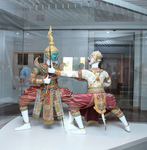 ส่วน นิทรรศการ “เครื่องโขน” เป็นการถ่ายทอดเรื่องราวประวัติศาสตร์ความเป็นมาของเครื่องแต่งกายโขนตั้งแต่อดีตจนถึงปัจจุบัน โดยจัดแสดงเครื่องพัสตราภรณ์ชั้นสูงที่เก็บรักษามาเป็นระยะเวลาหลายร้อยปี รวมทั้งคอลเลคชั่นสะสมส่วนบุคคลของผู้เชี่ยวชาญด้านโขน นำมาจัดแสดงควบคู่กัน รวมกว่า 100 ชิ้นเพื่อให้เห็นถึงวิวัฒนาการของเครื่องแต่งกายโขน โดยมีที่มาจากเครื่องต้น ซึ่งเป็นเครื่องแต่งกายของพระมหากษัตริย์ และพระบรมวงศานุวงศ์ในงานพระราชพิธีต่างๆ และพระราชดำริของสมเด็จพระนางเจ้าสิริกิติ์ พระบรมราชินีนาถที่ทรงฟื้นฟูการจัดแสดงโขนขึ้น ซึ่งส่งผลให้เกิดการพัฒนาและฟื้นฟูงานหัตถศิลป์ชั้นสูงต่างๆ จนเกิดเป็นเครื่องโขนพระราชทานในปัจจุบัน