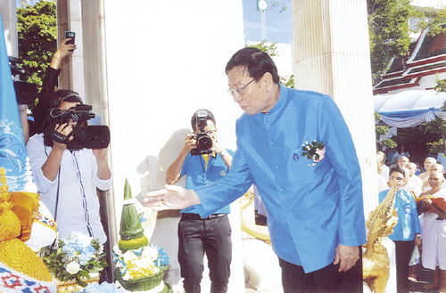ศ.พิเศษ พรเพชร วิชิตชลชัย ประธานฝ่ายฆราวาส เปิดกรวยกระทงดอกไม้ ธูปเทียนแพถวายราชสักการะ