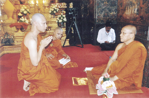 พระเทพสารเวที พระอุปัชฌาย์ ประกอบพิธีอุปสมบทแก่สามเณร ณ พระอุโบสถวัดบวรนิเวศราชวรวิหาร