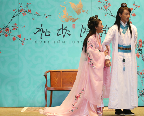 คู่พระนางของเรื่อง จู้ยิงไถ่-กัญภัส ศรีณรงค์ชยานุวัฒน์ และ เหลียงซันป๋อ-ณัฏฐ์ ทิวไผ่งามบอกว่า ละครเวทีที่เป็นมิวสิเคิล จะยากมากกว่าการแสดงละครเวที หรือร้องเพลงปกติทั่วๆ ไป จึงต้องทำการบ้านหนักมาก ทั้งด้านการร้อง การแสดง เพื่อสื่ออารมณ์ให้คนดูสัมผัสได้ถึงความรักของพระนาง