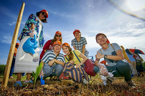 สื่อมวลชนร่วมปลูกมะพร้าวน้ำหอมเพื่อสร้างชุมชนคูณสุข