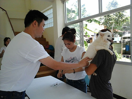 สวัสดีครับ เมื่อวันที่ 29-31 สิงหาคม 2559 ที่ผ่านมา ในฐานะหัวหน้าโครงการ "สัตวแพทย์ จุฬาฯ ติดปีก" ผมได้นำทีมคณาจารย์ สัตวแพทย์ นิสิต และบุคลากร จากคณะสัตวแพทยศาสตร์ จุฬาลงกรณ์มหาวิทยาลัย ออกหน่วยกิจกรรมจิตอาสา ปฏิบัติการทำหมัน ตรวจสุขภาพ ฉีดวัคซีนป้องกันโรคพิษสุนัขบ้า ถ่ายพยาธิ กำจัดเห็บหมัดและป้องกันพยาธิหนอนหัวใจ ให้กับสุนัขและแมวทั้งที่มีเจ้าของและจรจัด ให้กับชุมชนบ้านเพ และเกาะเสม็ด จังหวัดระยอง ซึ่งกิจกรรมนี้ได้ทำต่อเนื่องกันมาเป็นปีที่ 6 แล้ว ปีนี้มีท่านรองคณบดีฝ่ายบริการวิชาการ รองศาสตราจารย์ สัตวแพทย์หญิง ดร.เกวลี ฉัตรดรงค์ ร่วมออกหน่วยด้วยครับ