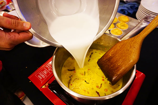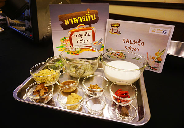เริ่มต้นกิจกรรมคุกกิ้งอาหารถิ่นที่ถือเป็นไฮไลท์เด็ดของทริปนี้ เป็นการพาเราไปทำความรู้จักกับอาหารถิ่นของพังงาแบบถึงเนื้อถึงตัว ได้เห็นเสน่ห์และกลิ่นอายของที่นี่ผ่านอาหารที่ลงมือทำด้วยตนเอง โดยมีคุณนภาวดี พยัคฆโส หรือเชฟแนตตี้ เป็นผู้สาธิตการทำเมนู และมี อ.คมกฤช อุ่ยเต็กเค่ง หรือ เชฟหมี ที่ได้เดินทางมาเป็นวิทยากรในทริปนี้ มาร่วมแนะนำเกร็ดเล็กเกร็ดน้อยให้กับเหล่าเชฟมือใหม่ทุกคนอีกด้วย ไม่รอช้าทุกกลุ่มได้เข้าประจำที่พร้อมลงมือทำจอแหร้งตามเชฟแนตตี้กันแบบขั้นตอนต่อขั้นตอน และยังได้ร่วมกันทำจอแหร้งพาย อาหารฟิวชั่นที่มีความลงตัวของ 2 สัญชาติ มีรสชาติแปลกใหม่แต่ไม่ทิ้งเอกลักษณ์เดิมอีกด้วย ซึ่งงานนี้เรียกได้ว่าทั้งสนุกและอิ่มอร่อยกันถ้วนหน้า เป็นการส่งท้ายทริปพังงาวันแรกได้อย่างน่าประทับใจ