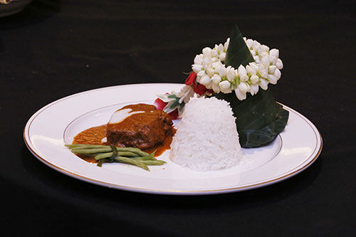 พะแนงเนื้อโคขุนกับข้าวหอมมะลิ และถั่วเข็มโครงการหลวง