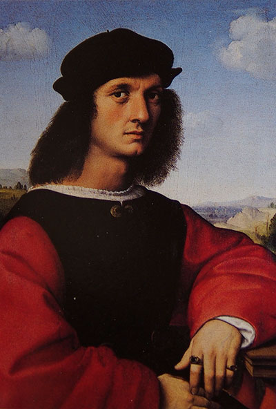Raphael หรือ Raffaello Sanzio da Urbino สถาปนิกและศิลปินยุคเรอเนสซองส์ที่โดดเด่นที่สุดคนหนึ่งแห่งยุคคู่กับ Michelangelo และ Leonardoda Vinci จนได้รับการยกย่องให้เป็น Trinity of the Great Master นี้เป็นศิลปินที่ประสบความสำเร็จอย่างมากตั้งแต่ยังมีชีวิตอยู่ ทั้งนี้เพราะไม่เพียงเขาจะมี workshop ขนาดใหญ่แล้ว เขายังมีผลงานเป็นจำนวนมากด้วย แม้เขาจะเสียชีวิตตั้งแต่อายุเพียงแค่ 37 ปีก็ตาม นอกจากเขาจะมีห้องที่จัดแสดงผลงานพิเศษที่ Palatine Gallery นี้แล้ว เขายังมีห้องพิเศษในVatican Palace ที่เขาเขียนภาพปูนเปียกที่ชื่อ The School of Athens ไว้ด้วย หลังจากที่เขาเสียชีวิต อิทธิพลของงานเขาต่อศิลปินอื่นๆ เริ่มลดลงโดยถูกแทนที่โดยงานของ Michelangelo แต่หลังคริสต์ศตวรรษที่ 18 เป็นต้นมา ผลงานของเขากลับมีอิทธิพลต่อโลกศิลปะตะวันตกอีกครั้งอันเป็นผลมาจากความกลมกลืนกันและความนุ่มนวลของงาน
